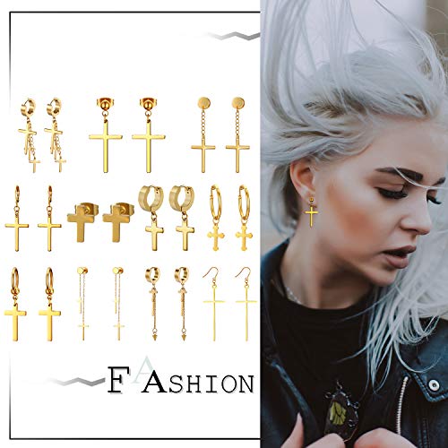 CUPIMATCH [11 Coppie] Orecchini da Donna Uomo a Croce,Orecchini alla Moda in Acciaio Inossidabile Stile Semplice ed Elegante Perfetto Regalo,Colore Oro
