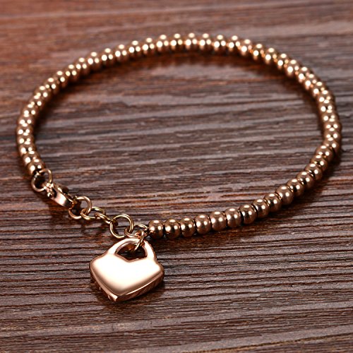 Cupimatch donna braccialetto perline acciaio inossidabile cuore liscio regolabile oro rosa