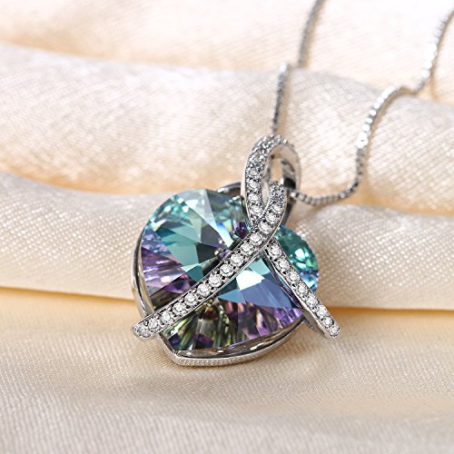 Cupimatch Donna Collana Pendente Cristallo Swarovski Elementi Cuore dell'Oceano Cristalli Colorati Mosaico zircone Luce di vitrail