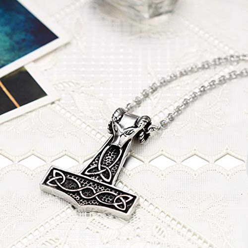 Cupimatch Mens gotico Biker in acciaio inox nodo celtico Thor Hammer Ram testa Ciondolo Collana con catena da 55cm, Argento Nero