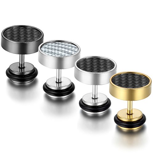 Cupimatch Set di 4 paia di orecchini da uomo in acciaio inox, 10 mm, Acciaio inossidabile, senza pietra