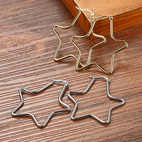 Cupimatch Orecchini Stella Grandi Donna Traforato Acciaio Inossidabile Oro Argento(2 Coppie),Regalo Valentine's Day Natale Compleanno