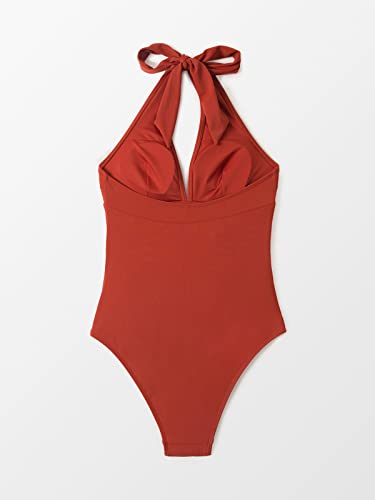 CUPSHE Costume da Bagno Senza Schienale da Donna con Scollo a V Arricciato all'Americana, Rosso, L