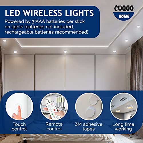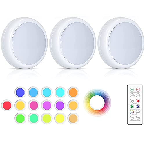 CUQOO Luci wireless sotto l'armadio con telecomando, confezione da 3 - 16 LED che cambiano colore sotto il gabinetto Touch Control luci da cucina | 8K Stick on luci con luminosità regolabile | luci