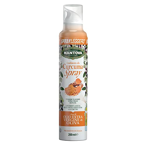 Condimento alla Curcuma spray a base di Olio Extra Vergine di Oliva. La curcuma è una spezia dalle molteplici qualità benefiche e che dona alle pietanze un inconfondibile colore giallo.