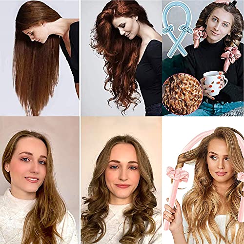 2 pcs Silk Hair Curler, Heatless Curler, Heatless Curling Rod Headband, No Heat Curls, Set per Bigodino Pigro, Soft Headband Wave Formers Hair Curlers DIY Hair Styling Kit (Rosa + blu)