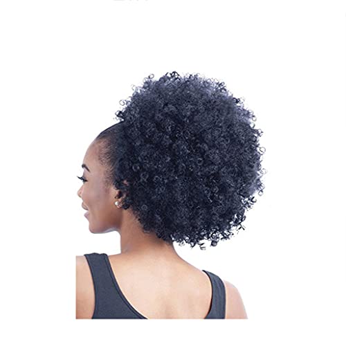10 Inch High Puff Afro Curly Wig Ponytail Drawstring Short Afro Kinky Pony Tail Clip In On Synthetic Kinky Curly Hair Bun 10inch color 1b