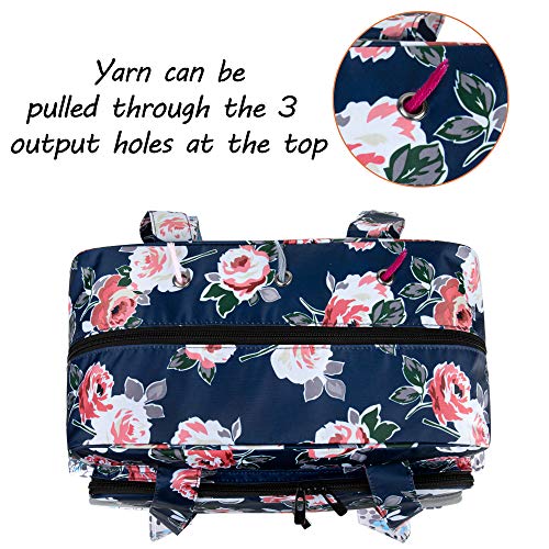 CURMIO Borsa porta filati, borsa tote per uncinetto, progetto di lavoro a maglia e accessori, ideale per principianti all'uncinetto e amanti del lavoro a maglia, solo borsa, Fiore blu