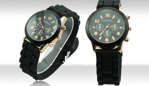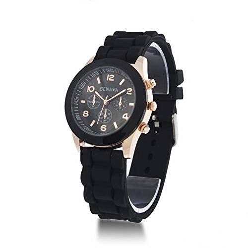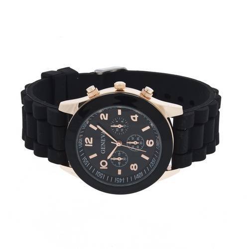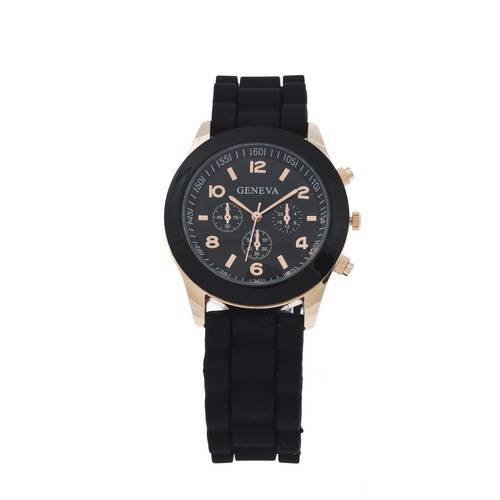 CursOnline OROLOGIO Geneva Acciaio e Oro Originale Uomo Donna Elegante - Comodo Bracciale Nero