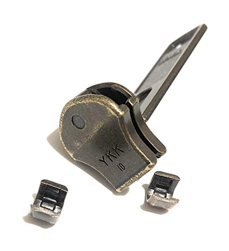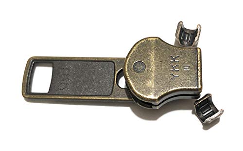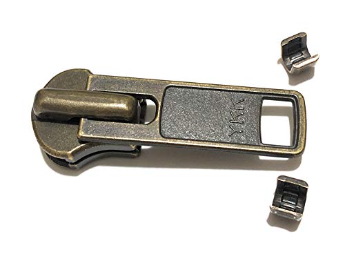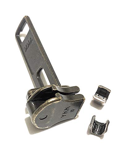 YKK, n° 10, cursore in ottone anticato, estrattore per cerniera dentata in metallo;