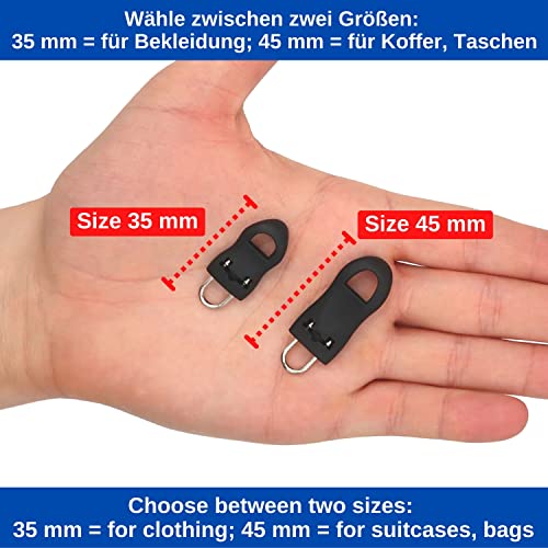 ✅ [LA CONFEZIONE COMPRENDE] Riceverai linguette sostitutive per chiusure lampo da 10 x 45 mm (composte ciascuna da linguetta tiralampo, gancio in metallo, tappo di chiusura in plastica).