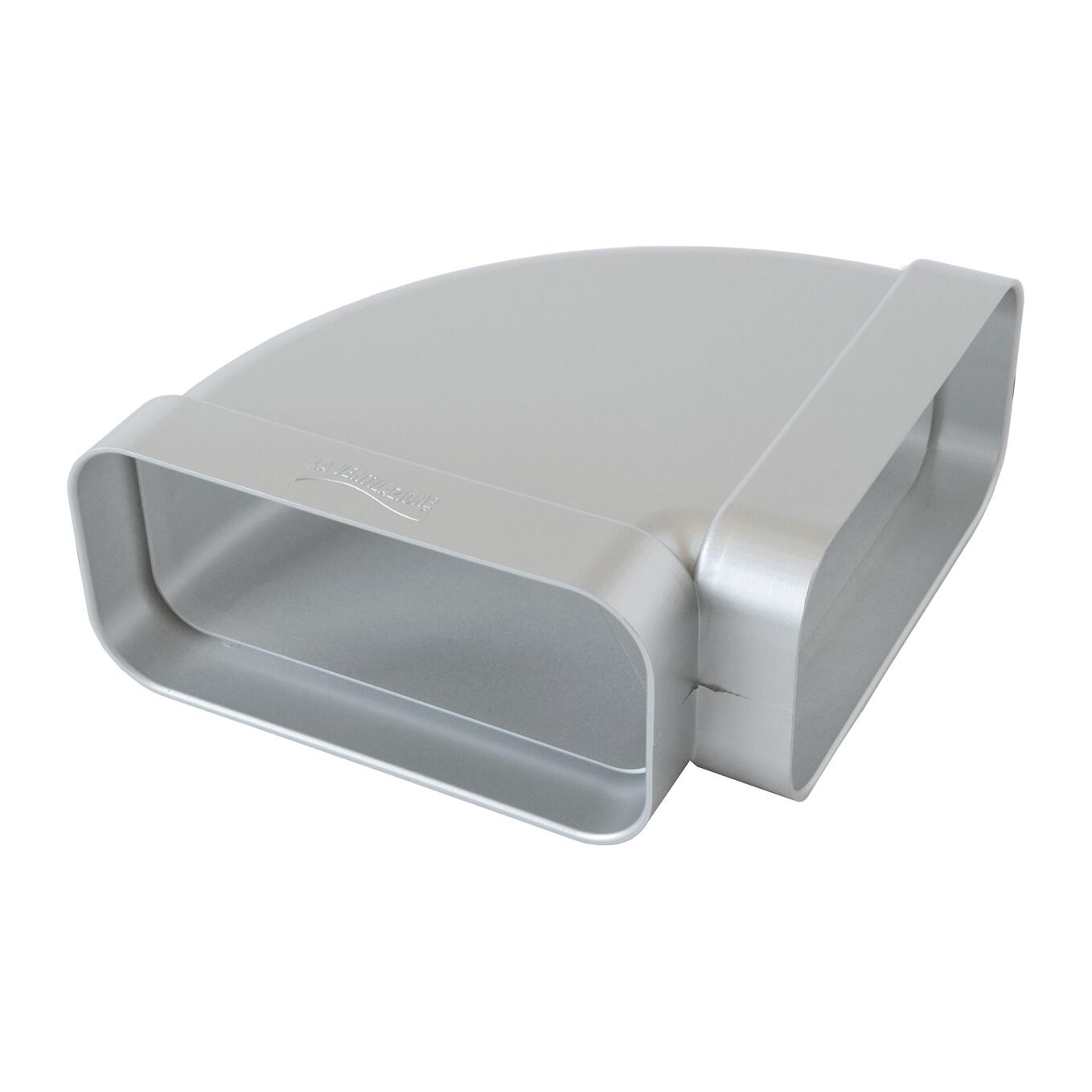 Curva orizzontale in ABS mm. 120x60 per tubo rettangolare per Aspirazione Canalizzata. Ideale per cucine e bagni. Adatto per passaggio tubo tondo tubo rettangolare. Sistema di aerazione che permette una rapida evacuazione di vapori e gli odori. Particolarmente idoneo per canalizzare aria sia fredda che calda