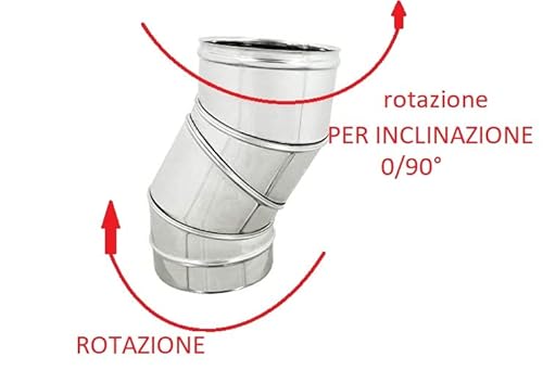 Curva Gomito Regolabile da 0°a 90° per canna fumaria in acciaio inox Maschio/Femmina Acciaio ASI 316 (Ø 80 mm)