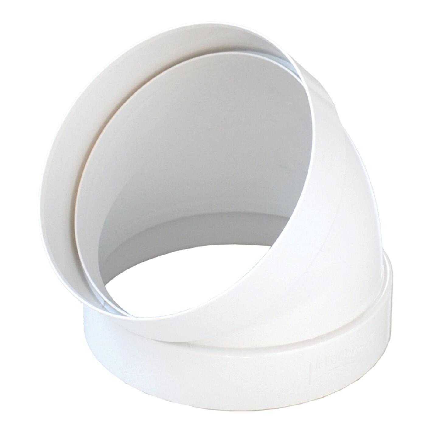 Curva a 45° in ABS per tubo Ø 100. Ideale per cucine e bagni. Adatto per passaggio tubo tondo tubo rettangolare. Sistema di aerazione che permette una rapida evacuazione di vapori e gli odori. Particolarmente idoneo per canalizzare aria sia fredda che calda