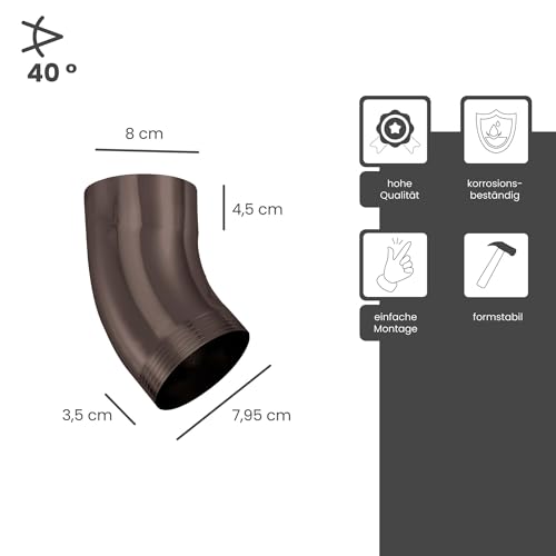 Curva pluviale in zinco, piegata in un unico pezzo, 40 gradi marrone rame DN 80