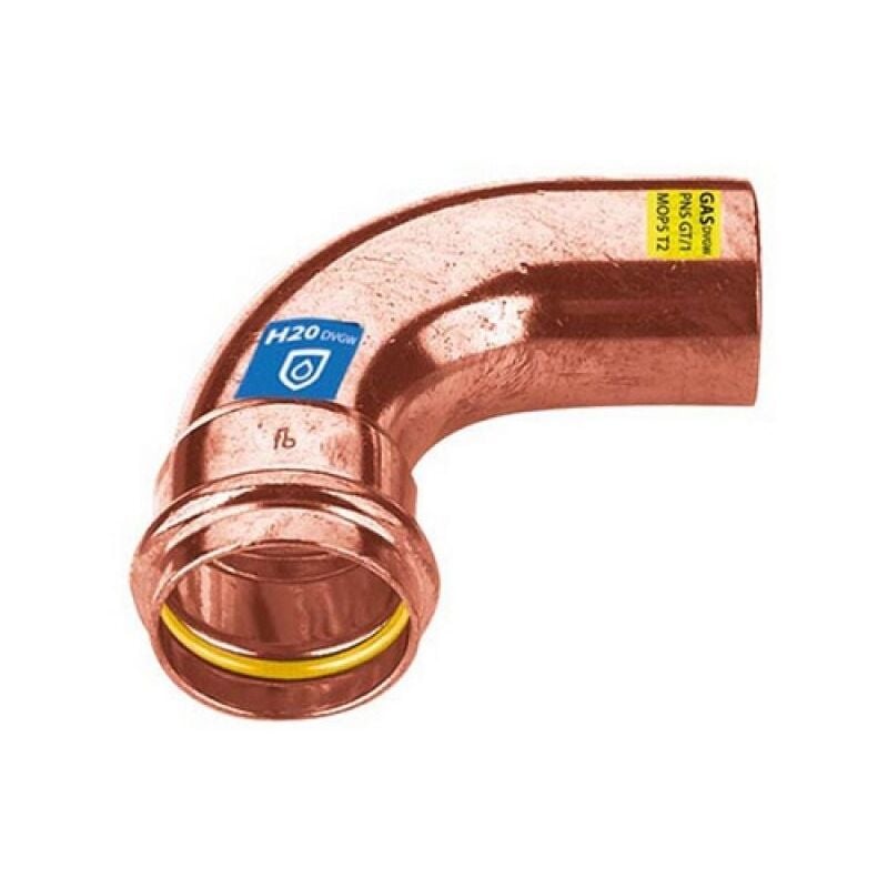 Raccordi in rame CW024A a pressare FRABOPRESS SECURFRABO. Raccordo unico per acqua e gas. Rame secondo EN1057. O-ring giallo in HNBR. Profilo di pressatura: V. (DianFlex) Diam. 28