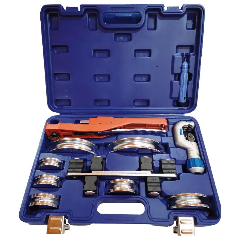 Kit curva tubi a cricco per tubi rame in pollici, matrici in acciaio con contromatrici dedicate, sbavatore e taglia tubo per tagli da diametro 4 a 28. Fornita in valigetta di plastica. Caratteristiche tecniche: Matrici per tubi in pollici da: 1/4-5/16-3/8-1/2-5/8-3/4-7/8