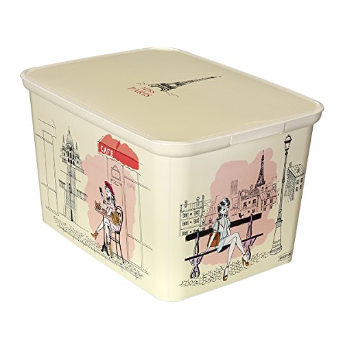 CURVER 213936 Déco Amsterdam Miss Paris - Scatola Porta Oggetti, in Polipropilene, 30 x 21 x 15 cm, Colore: Avorio