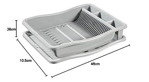CURVER 228566 - Scolapiatti a + vassoio modello grande con 24 piatti plastica grigio 48 x 10,5 x 38 cm