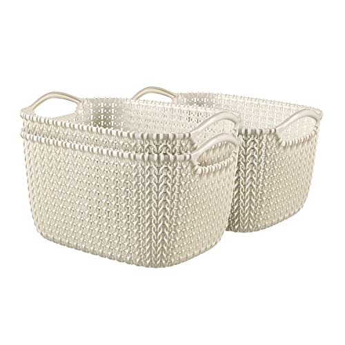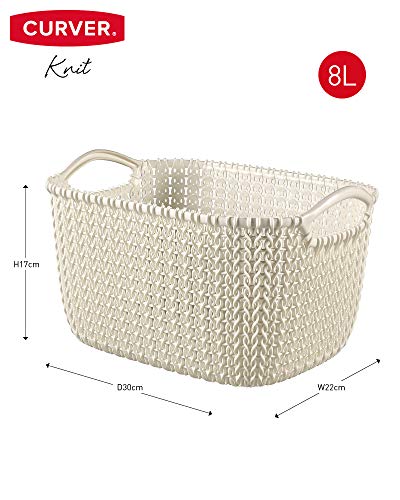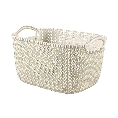 Curver Knit x5 - Cestino portaoggetti rettangolare piccolo, 8 l, colore: Bianco Oasis