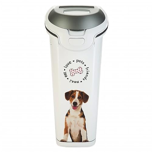 CURVER Contenitore per cibo secco per cani, capiente, ermetico, antiodore, con manici da viaggio, 23 x 50 x 50 cm, 10 kg/23 l, bianco