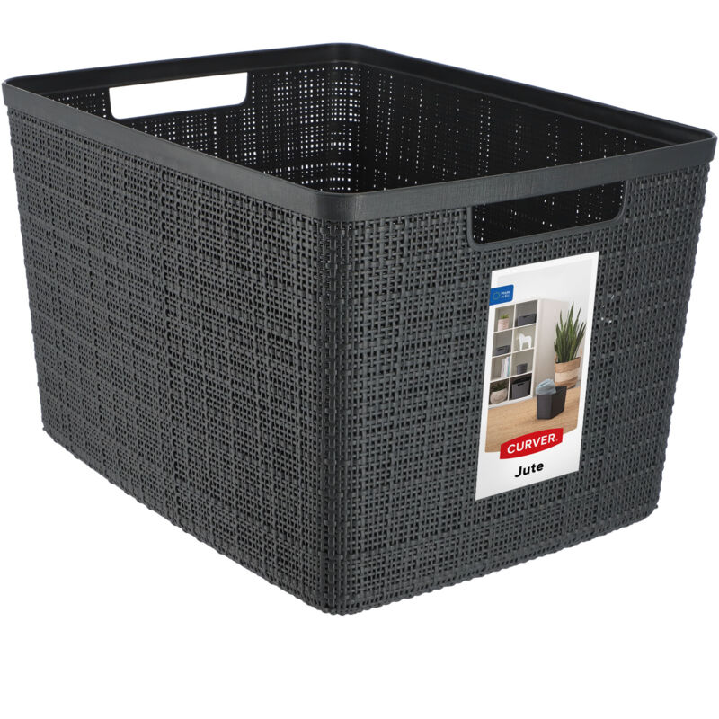 Cestino portaoggetti Curver Plastica robusta con effetto iuta Con manici Colore: antracite Contenuto 20 litri Dimensioni: 23 x 28,2 x 36,2 cm