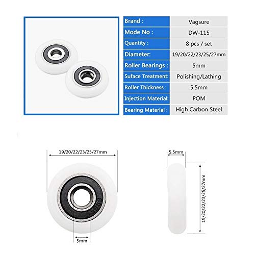 YC 8pcs Cuscinetti, Diametro 19 Millimetri / 20mm / 22mm / 23 Millimetri / 25mm / 27 Millimetri di Fissaggio Bagno Supporto della Porta Runner Doccia Scorrevole Rullo for Porta Puleggia Cuscinetto