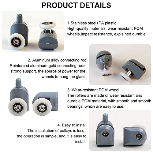 Materiale: il rullo della porta della doccia è realizzato in acciaio inossidabile e materiale ABS. È resistente alla ruggine, robusto e durevole, con una qualità stabile e ha una lunga durata.
