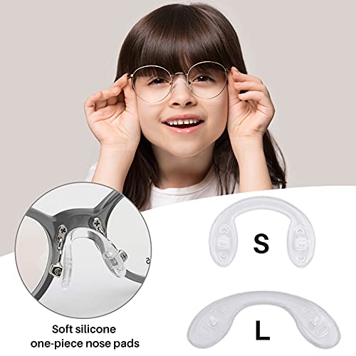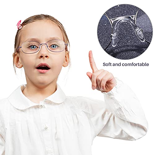 Naselli a forma di U: questi morbidi naselli in silicone con design antiscivolo a forma di U mantengono il ponte nasale con una forza uniforme e impediscono la deformazione sia degli occhiali che delle ossa del ponte, il che può proteggere efficacemente lo sviluppo del ponte nasale per i bambini.