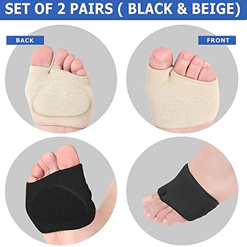 Cuscinetti per Piedi 2 Paia Cuscinetti Metatarsali Cuscinetti In Gel La Fasciatura Dell' Avampiede, Sollievo Dal Dolore e Sollievo Dalla Pressione Per La Metatarsalgia, Nero+Beige (L)