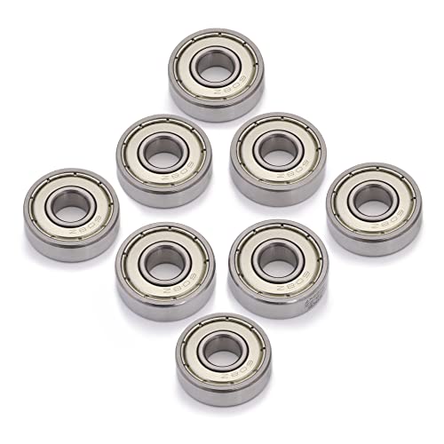 XiKe 608 ZZ Cuscinetti skateboard 8x22x7 Schermati di metallo 608Z Acciaio cromato Cuscinetti a sfera per Rollerblade Scooter Ruote Skateboard Pattini in Linea (Argento, 8 Pezzi)