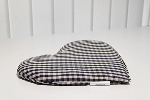 Cuscinetto a forma di cuore con semi di lino - 30 x 25 cm - Cotone biologico, bianco-blu - Cuscino termico