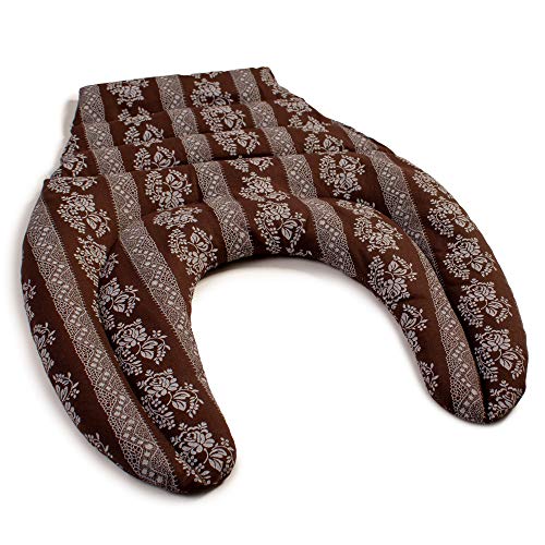 Cuscinetto ricurvo per collo e schiena, Fiori-marronis - Cuscino termico cervicale con semi di lino - Cuscino cervicale con parte schienale