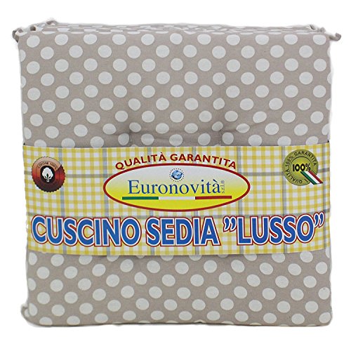 Set 6 cuscini Beige pois bianco,trapuntati al centro 40x40 spessore 5 cm, copri sedia cucina, Euronovità