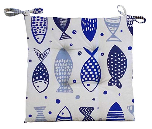 N. 4 Cuscini Coprisedia Per Cucina Pesci Mare Blu Estate Pouff