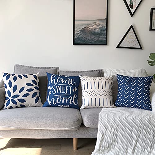 Set di 4 Cuscini Divano blu Moderno Geometrico Cotone Biancheria Decorativo Copricuscini Divano 45x45cm