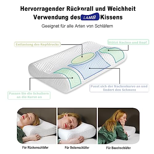 [Federa Lavabile]: La federa del cuscino cervicale per dormire LAMB è realizzata in tessuto speciale ad alta tecnologia RUCO-BAC MED. Non è solo morbido e traspirante, ma assorbe anche il sudore, può alleviare efficacemente i problemi della pelle e prolungare la vita del Memory Foam.