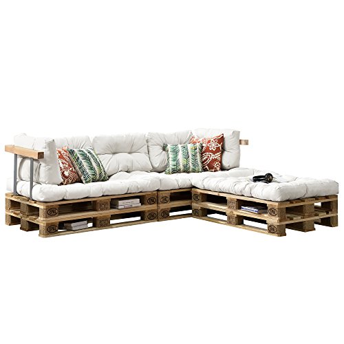 En.casa - Set di Cuscini per Mobili in Pallet/Bancale EPAL Composti di 3 Cuscini di Seduta e 5 Cuscini Schienali - Impermeabili, Trapuntati, Imbottiti - Bianco
