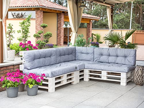 Set di cuscini per pallet, da giardino, cuscino per seduta da 120 x 80 + cuscino per schienale da 2 x 60 x 40, cenere