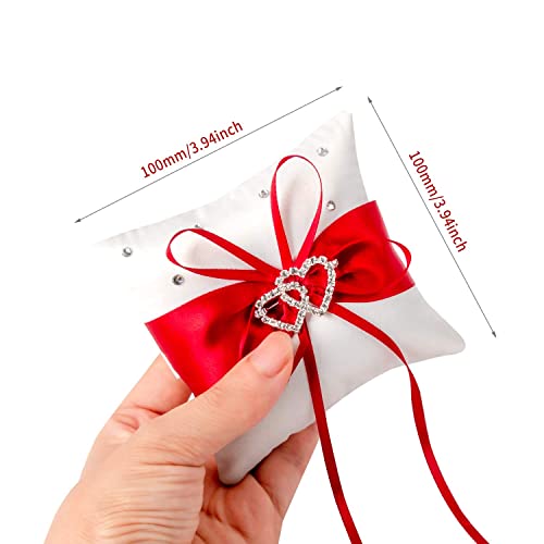 【Qualità Premium】 Il cuscino del cuscino ad anello è realizzato in tessuto di raso e strass, perfetto da indossare durante la cerimonia nuziale.