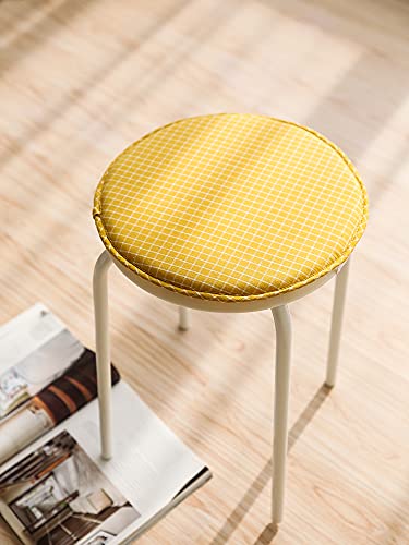 Cuscini da Sedia per Dentro e Fuori, con Legami, Antiscivolo, Rotondo, in Cotone e Lino, Diametro 33cm Spessore 2cm,Giallo
