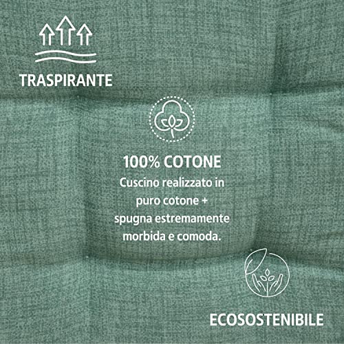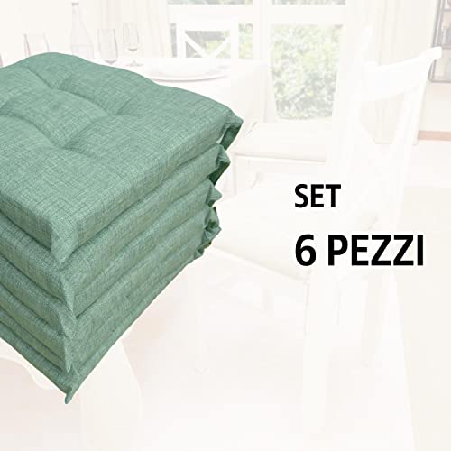 Set 6 Cuscini Sedia Con Lacci 4 Punti Comodi Made in Italy in Cotone Imbottiti e Spessi 6 Cm (Verde Salvia)