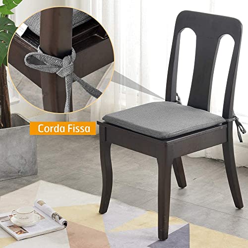 Set di 4 Cuscini Sedie Cucina con Lacci per Interni ed Esterni 40 x 40 x 3 cm Cuscino per Seduta da Pavimento (Grigio, 4)