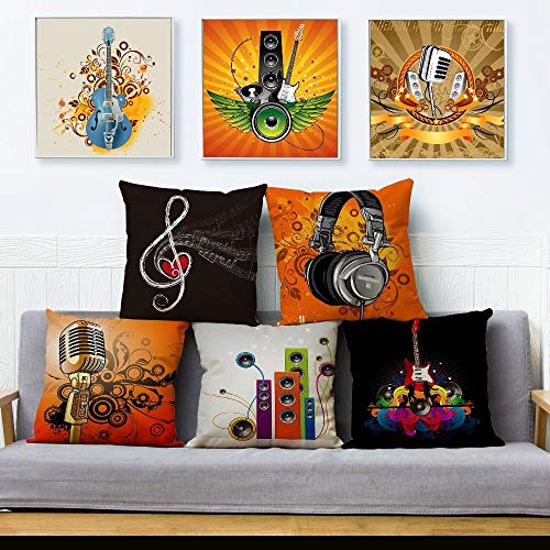 JWEK Set di 5 Cuscini in Stile Cartone Animato Rock Music Set di Cuscini Federa di Lino Beige 45X45Cm Quadrato Federa Federa Divano Decorazione della casa Federa
