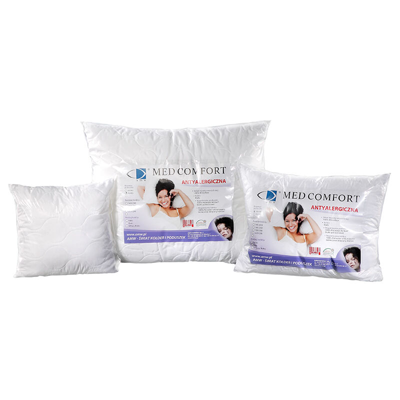 Cuscino 40x40 Med Comfort, Collezione: Med Comfort, Misura: 40x40, Colore: bianco, Fodera: 100% microfibra, Imbottitura del cuscino: palline di poliestere 100% Amball®, Peso del cuscino: 250 g, Il prodotto ha certificati, - Tessuti affidabili testati per le sostanze nocivo secondo OEKO-TEX® Standard 100, - Prodotto polacco. Confezione: busta con maniglia