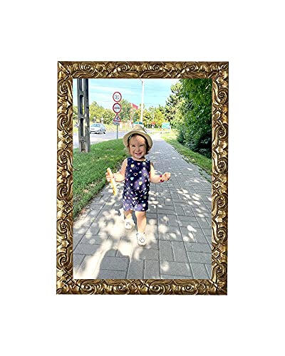 Cuscino Antico Ornato spazzato Cornice per Immagini/Foto/Poster con Foglio in Perspex - (25,4 x 20,3 cm) 10x8 Pollici Oro
