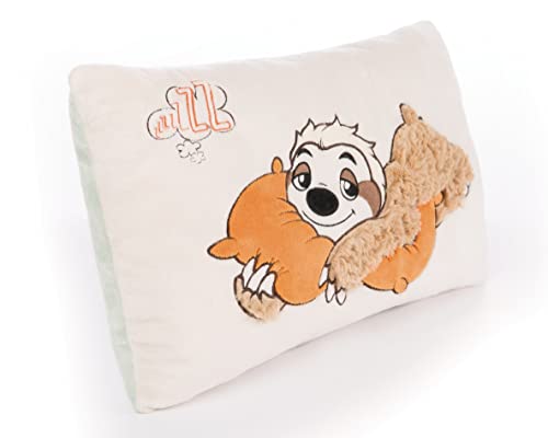Sulla parte anteriore del cuscino di peluche rettangolare, Wave Dave il bradipo giace comodamente su un cuscino e si appisola. Proprio come dovrebbe fare un bradipo! Quindi unitevi a lui e fate un sonnellino con lui. La parte posteriore è tenuta in verde chiaro.