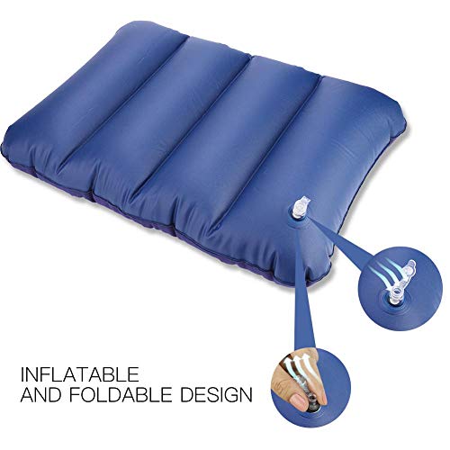 Cuscino da campeggio gonfiabile, cuscino da viaggio ergonomico gonfiabile all'asostituzione perto Cuscino da viaggio pieghevole morbidoso portatile cuscino da collo e lombare, blu