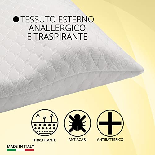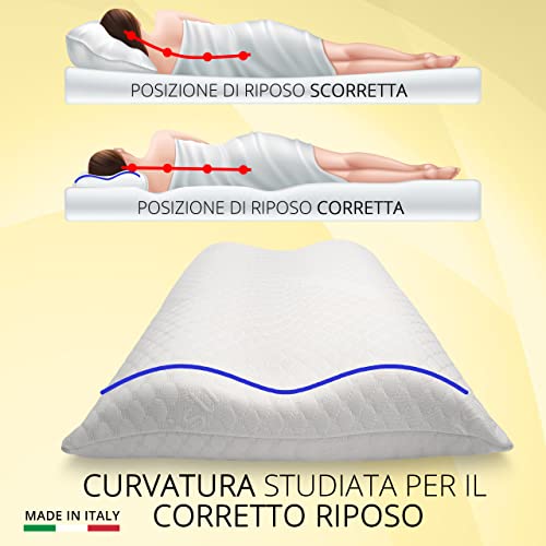 BY2H Cuscino Cervicale Per Dormire Made in Italy | Cuscino Cervicale Ortopedico Memory Foam Guanciale Letto Basso per Dormire Ergonomico Anallergico Collo Rimedi