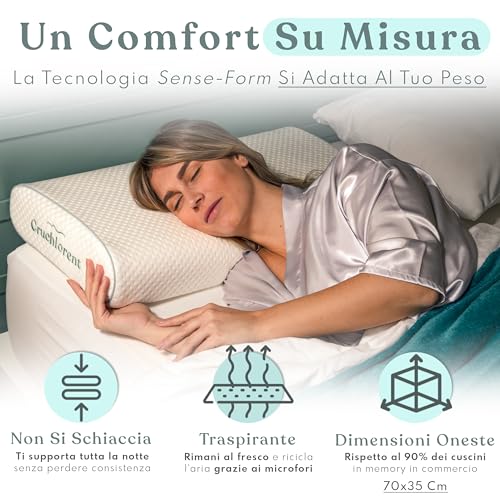 COMFORT SU MISURA: Goditi il supporto speciale della Tecnologia Sense-Form. Il nostro memory di 2° Generazione, calibrato per adattarsi al peso della tua testa. Ti avvolge, ti supporta tutta la notte e non si schiaccia.